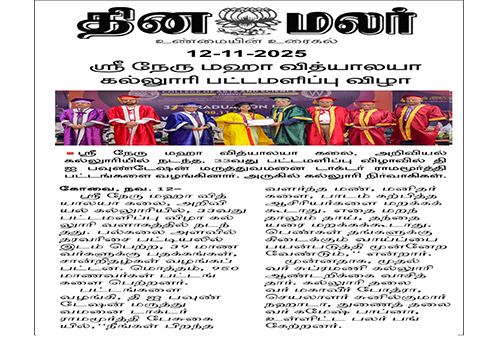 The untiring efforts of CWA have enabled Shri Nehru Maha Vidyalaya (SNMV) to blossom into a centre of learning. Today, it offers rich array of UG and PG programmes along with Research and Doctoral programmes complemented by fourteen value addition courses sponsored by the UGC. The present strength of the college is 3231 students and 147 teaching faculty members & 100 non teaching staff members. The college is approved by AICTE and is affiliated to Bharathiar University.