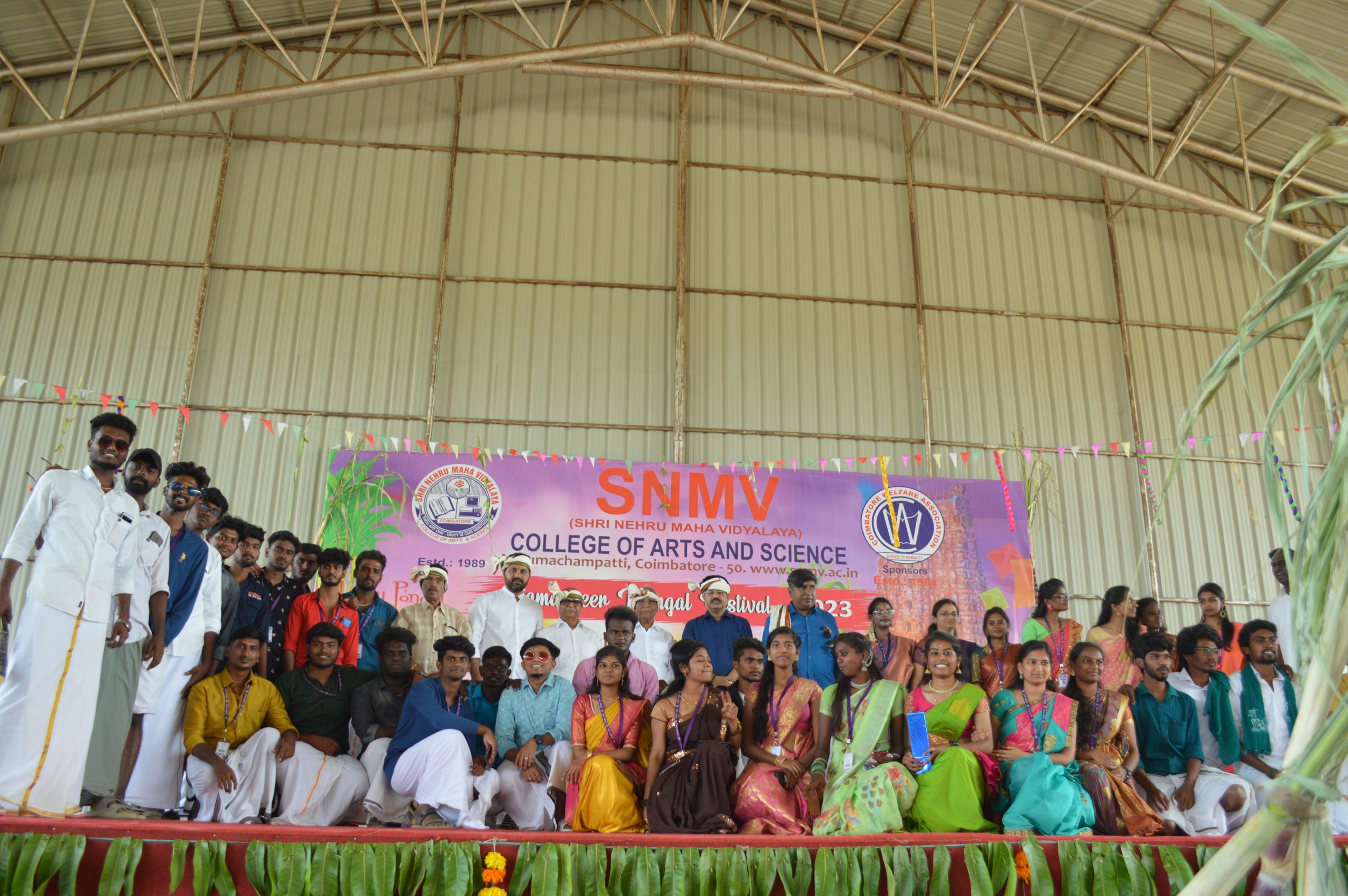 Samacheer Pongal was celebrated with great fervor at Shri Nehru Maha Vidyalaya College of Arts and Science on 11th January 2025. The festivities commenced at 9:00 a.m. in the Multipurpose Auditorium with a captivating display of vibrant rangoli. The celebration was organized with the objective of preserving the rich cultural traditions of India and instilling a spirit of unity and togetherness among the students.