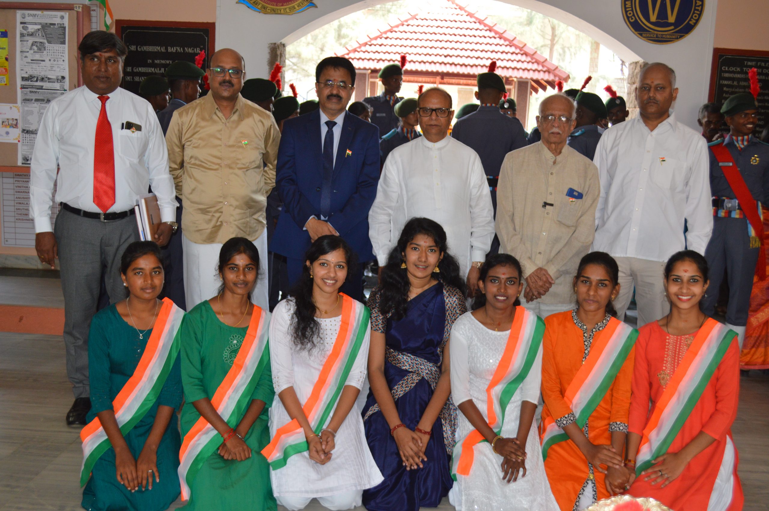 On this proud occasion, Dr. B. Subramani, Principal of the College, Welcomed the gathering and paid tribute to the Indian soldiers who sacrificed their lives for the nation. Shri Mahaveer Bothra, President – CWA, SNMV, presided over the event and highlighted the importance of independence, India’s culture, and its people. Shri Sunilkumar Nahata, Secretary – CWA, SNMV, spoke about the value of nationhood and the selfless dedication of those who serve the country. Shri Bharathkumar Jagamani, Joint Secretary, SNMV CAS, felicitated the gathering and emphasized that every Indian must remember and honor our dedicated warriors as it is our foremost duty.