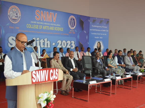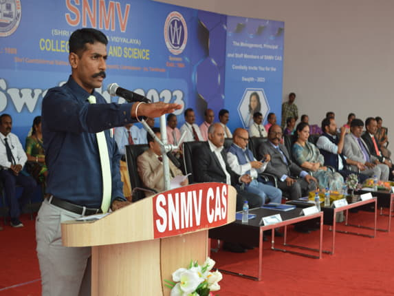Dr. B. Subramani, Principal of the College, delivered the Welcome Address. Shri Mahaveer Bothra, President – SNMV CAS, delivered the presidential address, paying tribute to the nation. Shri Sunilkumar Nahata, Secretary – SNMV CAS, and Shri Bharathkumar Jaghamani, Joint Secretary – SNV/CWA, felicitated the gathering.